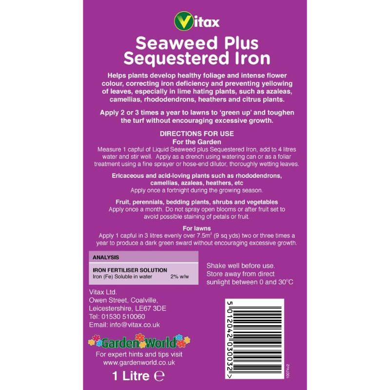 Vitax Seaweed plus Sequestered Iron 1L