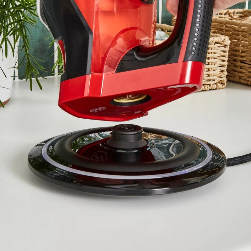 - Cordless: Go completely wireless with our cordless iron, the 360 degree charging base means that you’ll never have to search for a plug ever again! The cordless design also frees you up to use your iron like a vertical steamer. A generous 2.5 metre cord is attached to the base.